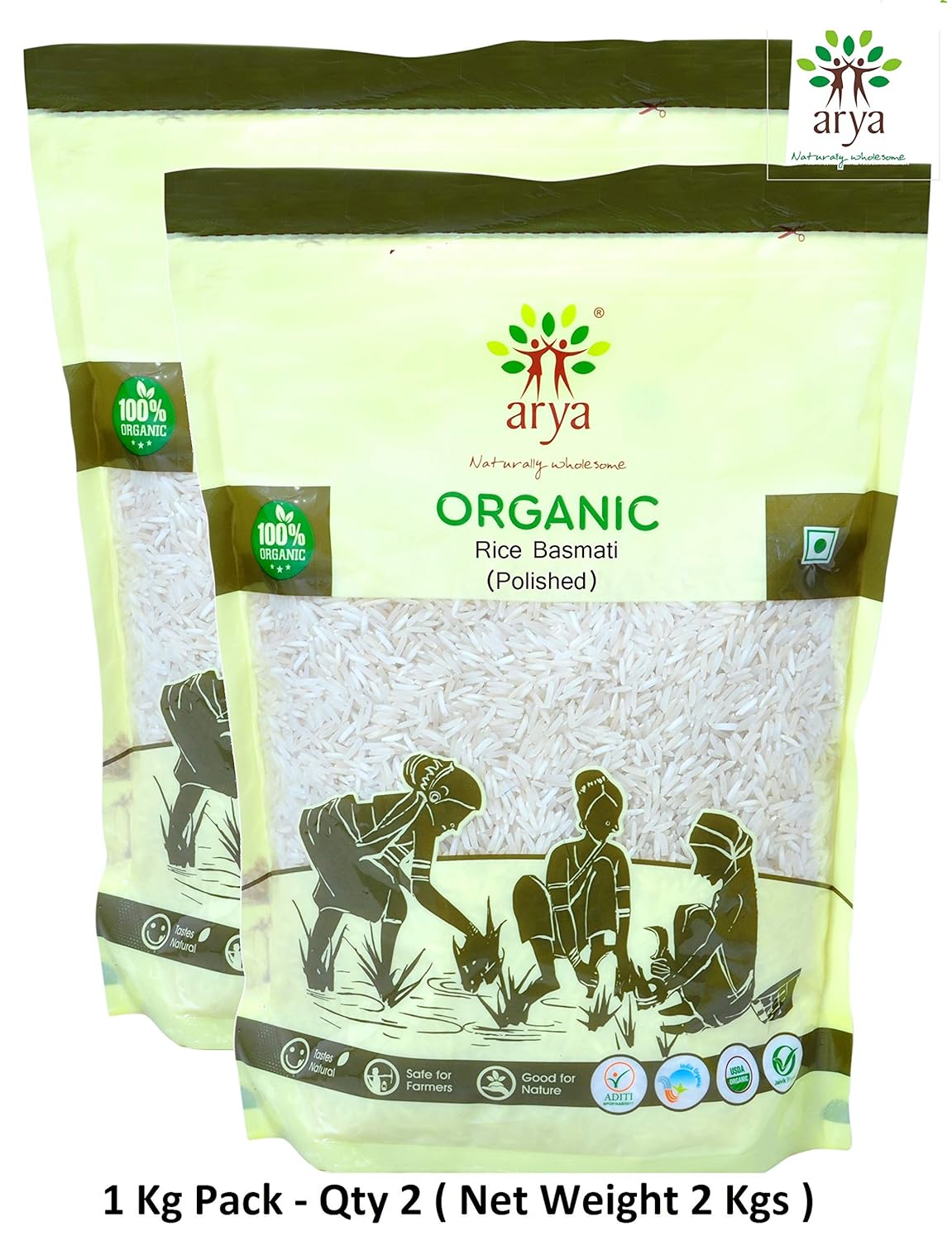 Arya Farm Certified Organic Without Chemicals Pesticides Preservatives Basmati Rice, 2 kgs, 2 kg